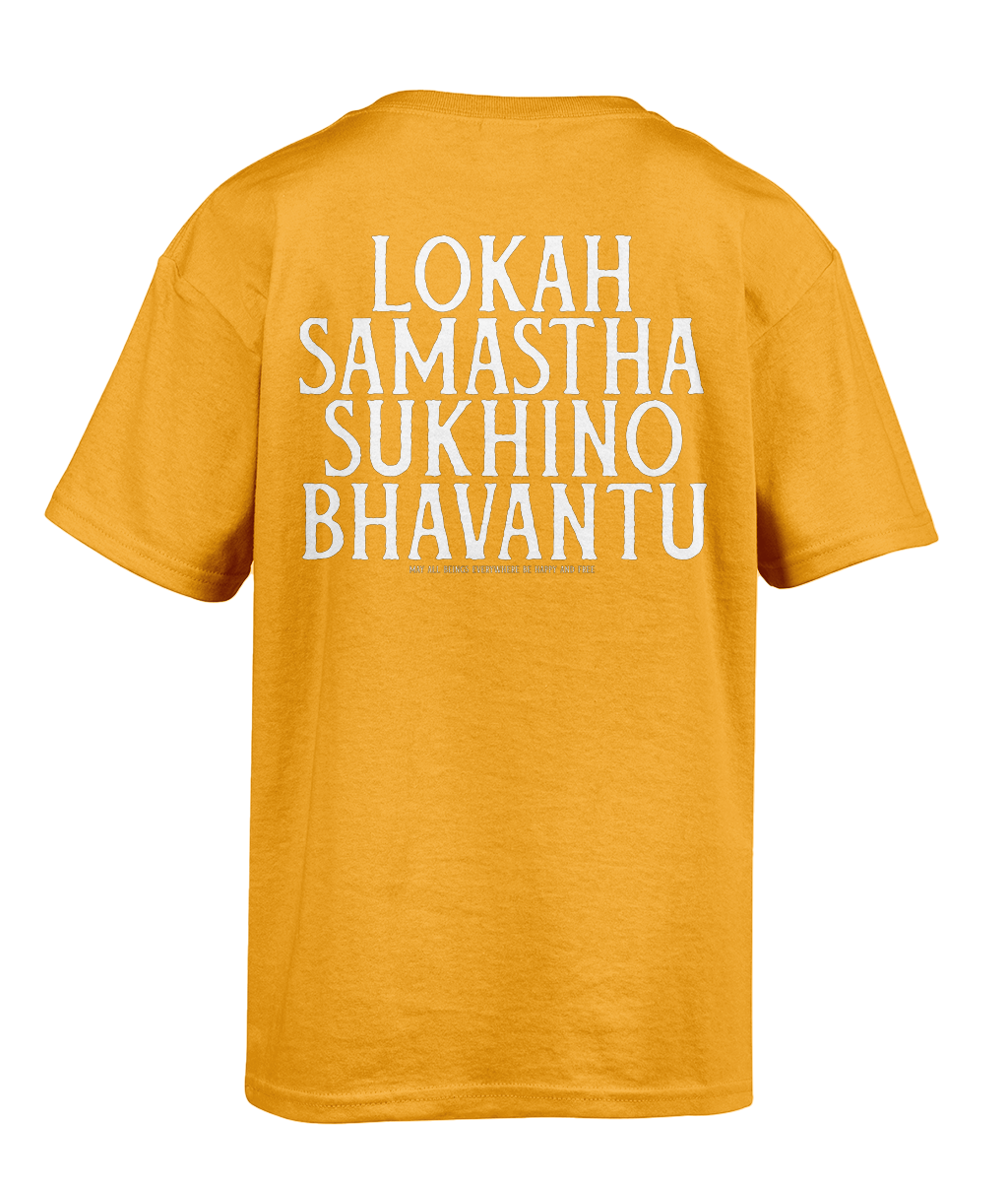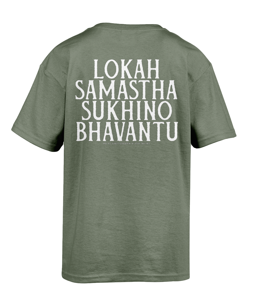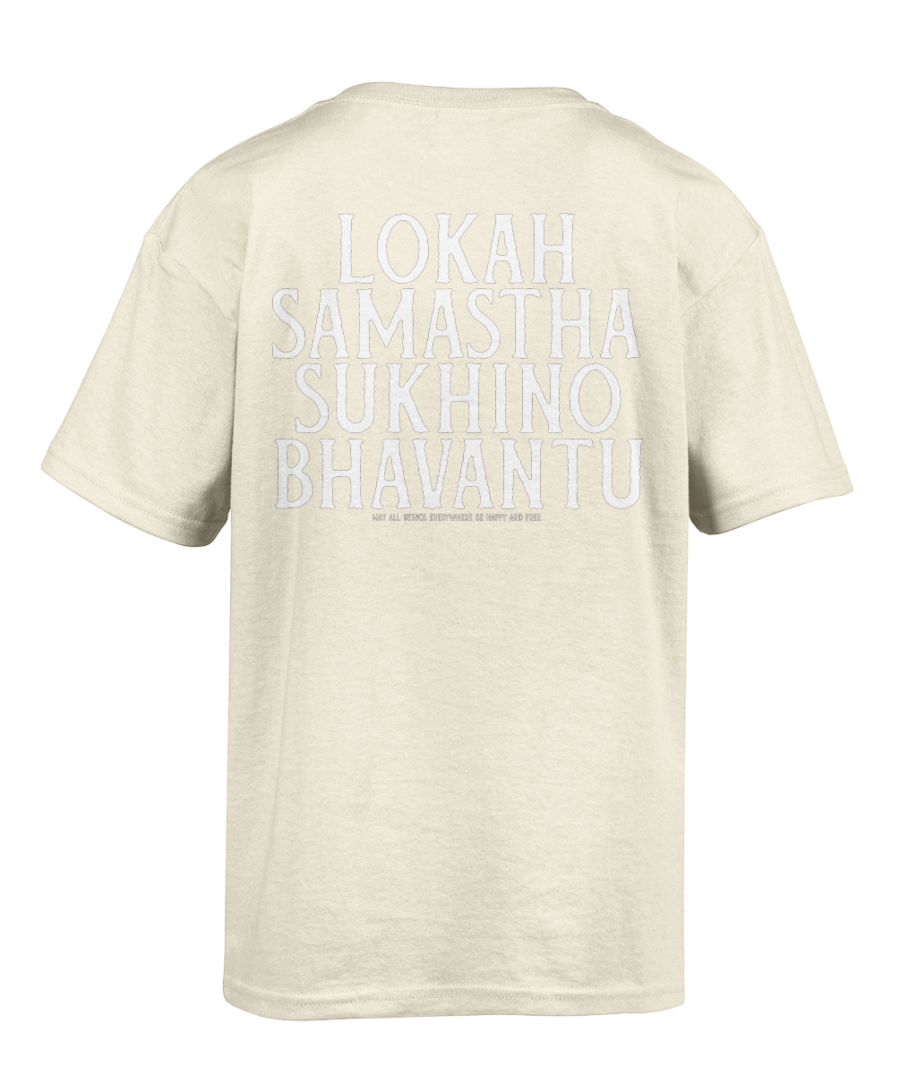 This Big Heart Yoga T-shirt features our signature logo on the left chest, simple, subtle, and easy to wear wherever your day takes you. On the back, the sacred Sanskrit words Lokah Samastah Sukhino Bhavantu are printed as a bold reminder of connection, compassion, and collective wellbeing.